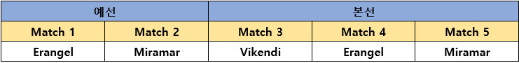 *Vikendi는 대회 로컬룰에 의거하여 SR&Deagle 전으로 진행됩니다.