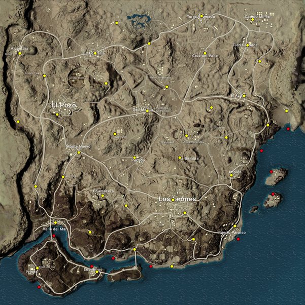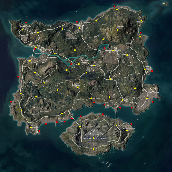 · 노랑색 점: UAZ 혹은 다시아 고정 스폰위치