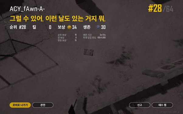 경기가 종료되면 선수들은 마지막 결과 화면을 스크린샷으로 기록해야 합니다. 스크린샷에는 ID와 등수, 킬 수가 나와야 합니다.