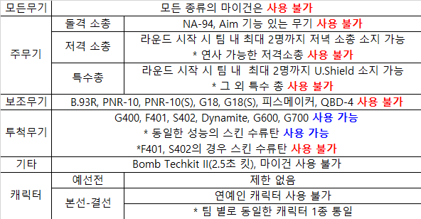 * 방 설정 미준수 후 진행된 경기의 결과는 그대로 인정됩니다.