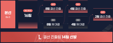 3.3.3.1. 16팀의 변형 토너먼트 3판 2선제로 진행된다. (이미지 참고)